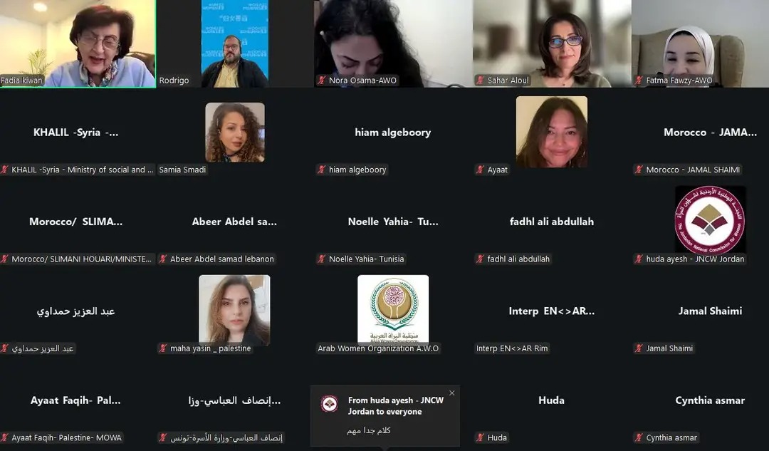 شاركت اللجنة الوطنية للمرأة في الاجتماع الأول لمجموعة العمل الإقليمية المخصص لإعداد “خارطة طريق لاقتصاد الرعاية في المنطقة العربية”، والذي عقدته منظمة المرأة العربية بالتعاون مع هيئة الأمم المتحدة للمرأة (UN Women) عبر تقنية الاتصال المرئي (Zoom).