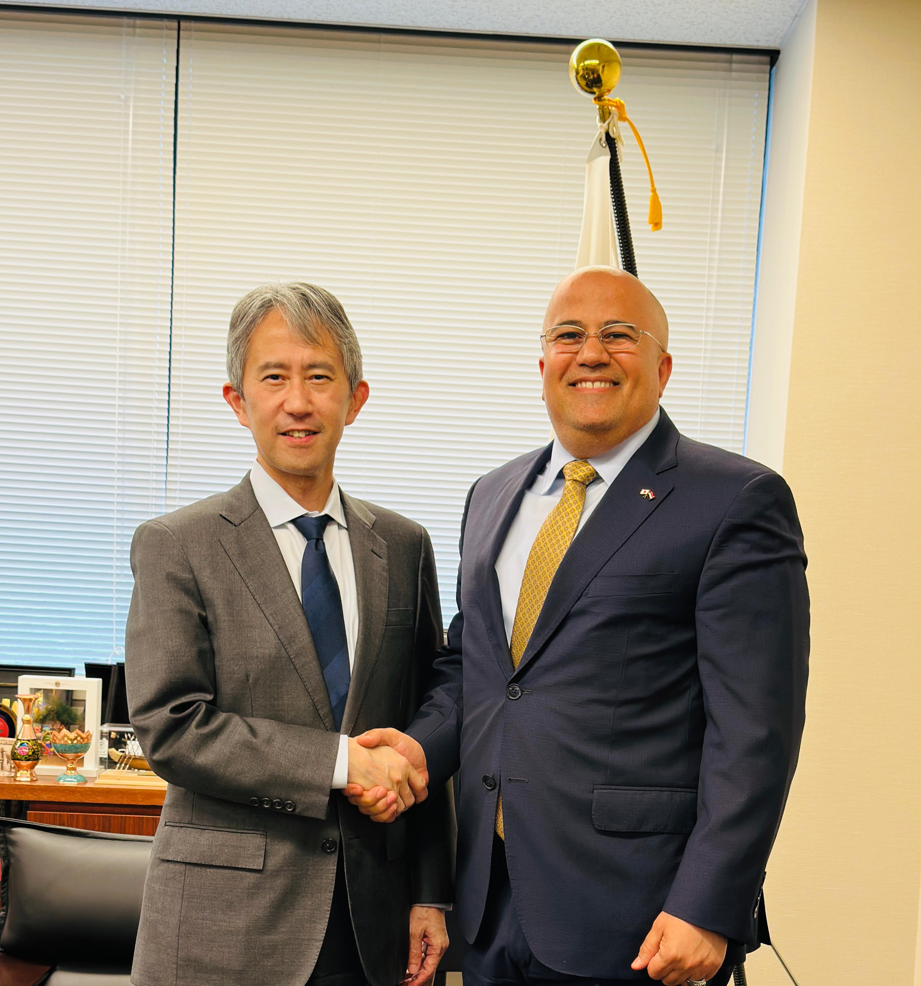 بحث سفير اليمن لدى اليابان عادل بن علي السنيني، اليوم، مع السيد/ كيئيتشي ايواموتو رئيس دائرة الشرق الاوسط وافريقيا فى الخارجية اليابانية تعزيز العلاقات الثنائية وتوسعة مجالات الدعم المقدمة من الحكومة اليابانية الصديقة.